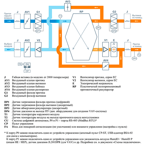 • - Система защиты от замерзания и система разморозки рекуператора.